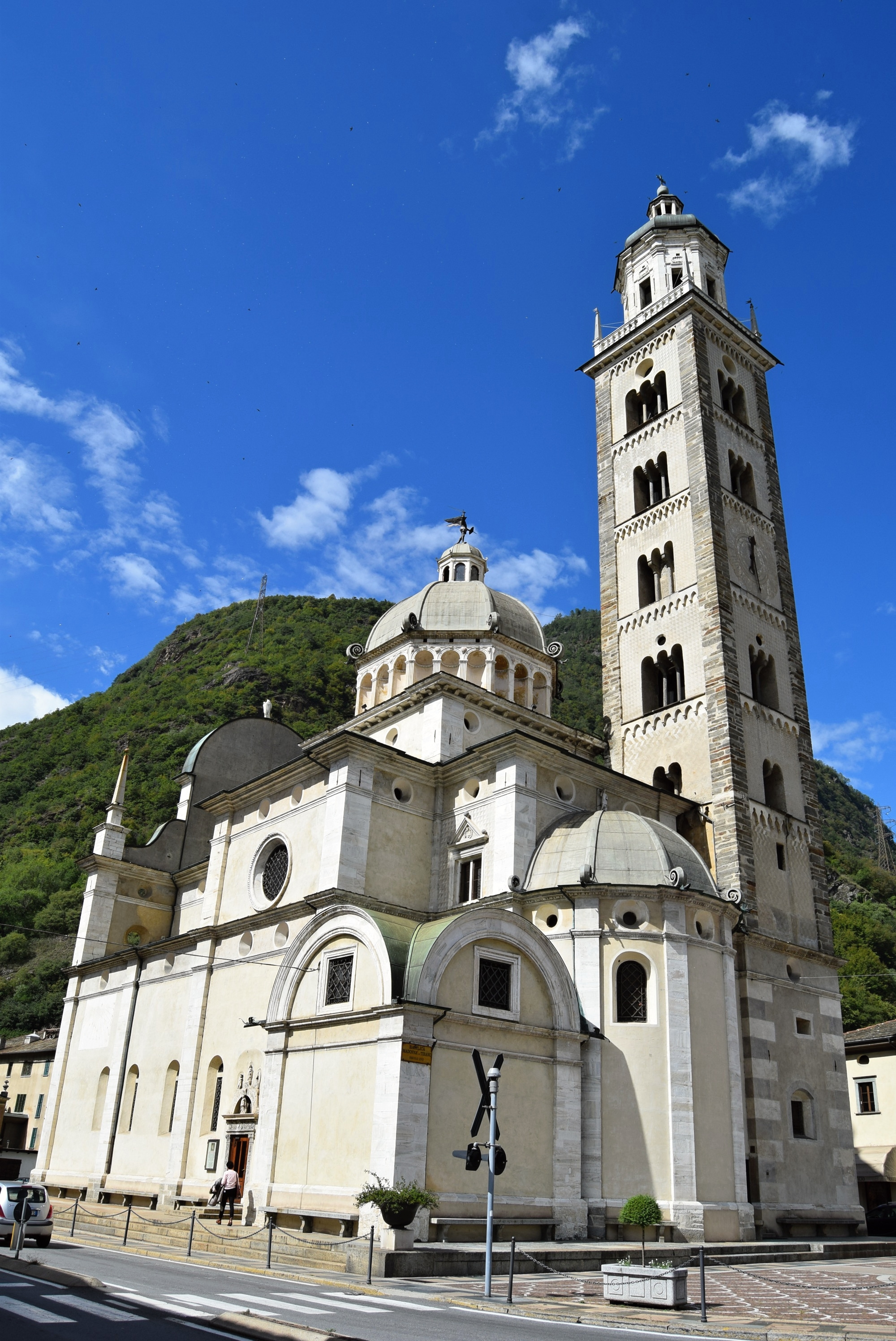 The Sanctuary of the Madonna of Tirano stands on the Swiss-Italian border, where the Virgin appeared to Mario Omodei on 29 September 1504, promising an end to the plague which was decimating the region, if a Church in her honour would be built, on the spot outside the City walls. The epidemic subsided and the townspeople placed the first stone of the Sanctuary on 25 March 1505.