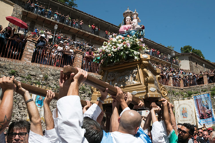 Every year, people from all over Calabria and Sicily would make the 24-hour walk, enlivened by hymns and ballads, along the rugged path to Polsi, where they would greet the Madonna with gunshots on their arrival on 2 September As pilgrims still do — though now they can travel by road or train as well — they would spend the night in one of the hostels near the Shrine. On 3 September, a wooden Madonna is carried in procession. The stone Statue is only taken from its place on the main Altar every 25 years or in special circumstances. Also known as the Mother of the Good Shepherd, the Madonna of the Mountain was crowned in 1881, 1931 and on 2 September 1981.