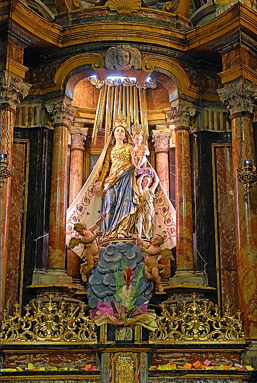 The Bubonic Plague that swept Europe in 1630 was especially deadly in northern Italy. The City of Turin lost over 70 percent of its population. The neighbouring City of Chieri appointed a commission to control the epidemic. In the absence of reliable medical solutions, the commission’s first action was to seek divine help, vowing on 26 June to build a Chapel to the Blessed Virgin of Graces in Chieri’s main Church, Santa Maria della Scala (St. Mary of the Stair). Chieri had lost 40 percent of its population. The survivors built the Chapel, where a wooden Statue of the Madonna and Child by Piedmontese sculptor, Pietro Botto, was installed in 1642. The Blessed Virgin of Graces became the Patron Saint of Chieri, which celebrates her with a Novena of special Masses and prayers and a secular program of music, dancing and food, culminating in her festa on the second Monday in September.