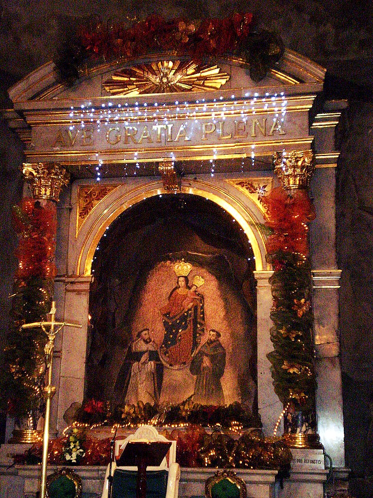 The congregation celebrated the first Mass in the Pastarán river cave – it was 16 September 1754 and they built a straw grotto. With the endorsement of the ecclesiastical authorities, who declared the event as a miracle on 15 September 1754. Very soon, the image began to be venerated with great fervour and many miraculous events occurred there. Around the image the faithful devotees have erected four successively larger Churches, until culminating in the current Sanctuary whose construction lasted 30 years and was completed in 1949. In 1952 , Pope Pius XII granted the image the canonical coronation and in 1954 he granted the Sanctuary, the title of Minor Basilica.