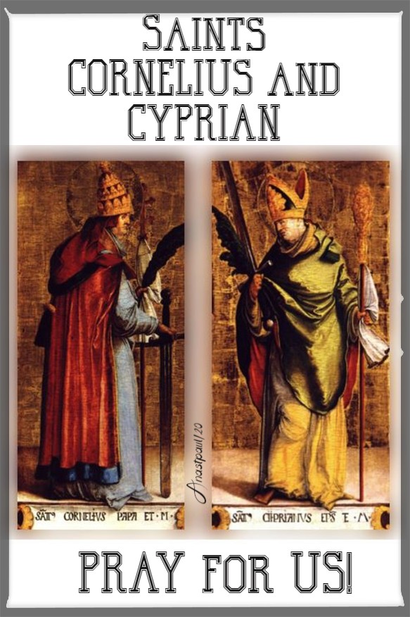 PRAYER – Look upon us Lord, Creator and Ruler of the whole world, give us the grace to serve You with all our hearts, to take up our cross and follow You, that we may come to know the power of Your love and the forgiveness which You give and You teach. Grant that by the intercession of Sts Cornelius and Cyprian, we may attain the glory of Your kingdom and see You face to face. We make our prayer through Christ our Lord with the Holy Spirit, one God forever, amen.