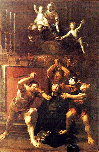 Peter performed the duties with zeal and justice. Although the enemies of the Inquisition accuse him of cruelty, it is certain that not a single sentence of death can be traced to him. The Marranos, however, whom he had punished hated and resolved to do away with him. One night while kneeling in prayer before the Altar of Our Lady in the metropolitan Cathedral where he used to recite the Office with his brother Canons, attacked him and hired assassins inflicted several wounds from which he died on 17 September 1485. He was just 44 years old.
