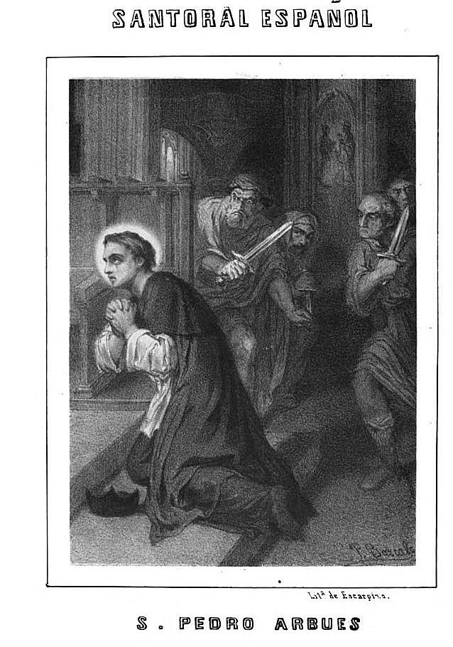 The Roman Martyrology states of him today: “St Pedro of Arbues, first Inquisitor of the faith in the Kingdom of Aragon, who received the Palm of Martyrdom by being barbarously massacred by apostate Jews, for defending courageously, the Catholic faith, according to the duties of his office. He was Canonised by Pope Pius IX in 1867.“