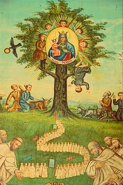The Leśnia Sanctuary begins on 26 September 1683. On that day, two shepherds – Miron Makaruk and Aleksander Stelmaszuk – looking for the lost cattle in the bushes, noticed a stone image of the Mother of God hanging on a wild pear tree, which gave an extraordinary glow. Wanting to take the painting off, one of the bravest young men climbed the tree but each time fell to the ground. The local inhabitants, seeing what was happening, began to pray fervently. Soon, Zabłocki’s elders from nearby Bordziłówka arrived and only he, as an unusually prayerful man, took the painting off the tree. Droplets of “sweat” appeared on the image and this phenomenon continued for a long time. Then the painting was taken to the manor in Bukowice. This extraordinary find deeply touched the religious and secular authorities of the time. Soon a wooden Church was erected on the site of the appearance of the Image. On 26 September 1695, a Parish was established in Lesna. From the very beginning, the Image attracted crowds of believers who experienced many favours thanks to the Blessed Mother, especially cures of illnesses. The Bishop of Lutsk, Franciszek Prażmowski, issued a decree in 1700, in which he stated that the appearance of the Image should be considered miraculous.