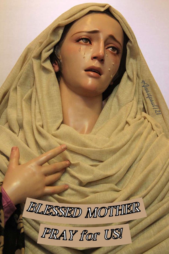 PRAYER – Lord God, You hold out the Light of Your Word to those who do not know You. Strengthen in our hearts, the faith You have given us and the Credo we profess, so that no trials may quench the fire Your Spirit has kindled in us. May the intercession of the Mother of the Word made flesh and our Mother, grant us the grace of following the way of the Cross, to stand beneath it with our her, Ave Maria! We make our prayer through Jesus Christ with the Holy Spirit, one God forever, amen.