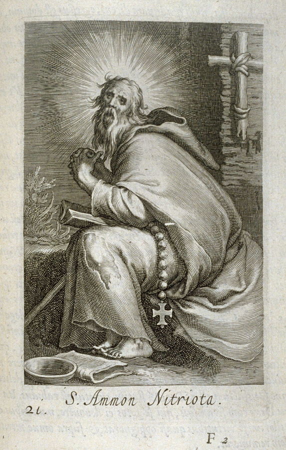 He died before St Anthony tof the Desert, from whom there is an epistle to him. that is, before the year 365, for the latter asserted that he “saw the soul of Ammon borne by angels to heaven” and as St Athanasius’ history of St Antony preserves the order of time, he died perhaps about 348. There are generally seventeen or nineteen Rules of Asceticism ascribed to him – the Greek original exists in manuscript; they were published in the Latin version of Gerardus Vossius. Twenty-two Ascetic Institutions of the same Ammon, exist also in manuscript. A collection of his letters remains extant.
