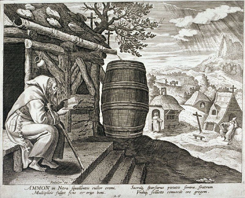 He died before St Anthony tof the Desert, from whom there is an epistle to him. that is, before the year 365, for the latter asserted that he “saw the soul of Ammon borne by angels to heaven” and as St Athanasius’ history of St Antony preserves the order of time, he died perhaps about 348. There are generally seventeen or nineteen Rules of Asceticism ascribed to him – the Greek original exists in manuscript; they were published in the Latin version of Gerardus Vossius. Twenty-two Ascetic Institutions of the same Ammon, exist also in manuscript. A collection of his letters remains extant.