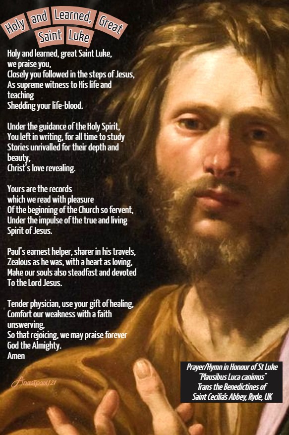 Holy and Learned, Great Saint Luke Prayer/Hymn in Honour of St Luke “Plausibus Luca canimus” Trans the Benedictines of Saint Cecilia’s Abbey, Ryde, UK