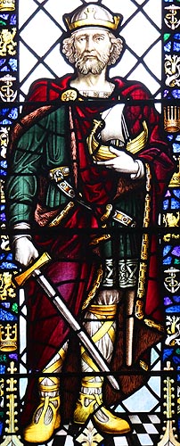 On a pilgrimage to Rome at the age of four, Alfred was blessed by Pope Leo IV, an event that deeply impressed the young Saxon boy. Two years later he witnessed his father’s marriage to a young Princess of the Frankish court. Following the death of his father and the brief reigns of his brothers, Alfred became King of the West Saxons (the Kingdom of Wessex) in 871. At the time, the pagan Danes had gained control of large part of eastern and southern England and were harrying the eastern coasts, burning Churches and Monasteries and killing the inhabitants.