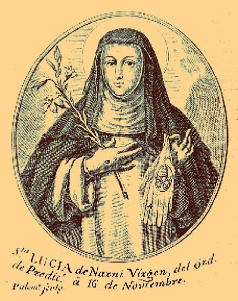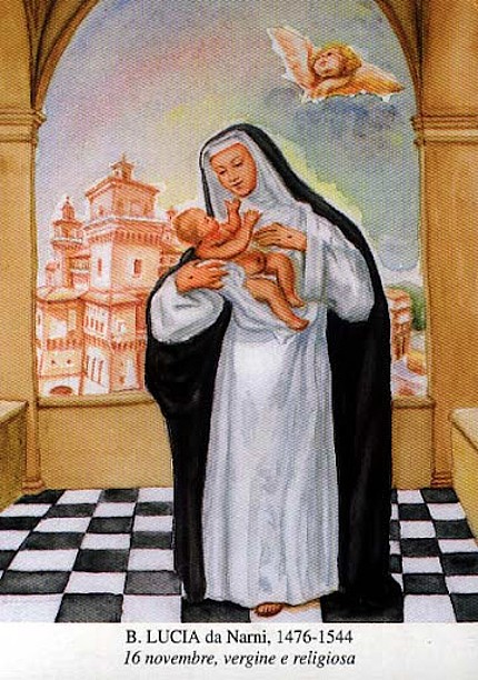 Saint of the Day – 15 November – Blessed Lucia of Narni OP (1476-1544) Virgin, Tertiary of the Order of Preachers, Mystic, Stigmatist, Ecstatic, Married but remained chaste and fulfilled her vow of Virginity before she left her marital home and entered a Convent. Born on 13 December 1476 in Narni, Umbria, Italy as Lucia Brocadelli and died on 15 November 1544 at the Saint Catherine of Siena Convent in Ferrara, Italy of natural causes. Patronage – of Narni, Italy. Also known as – Lucy Brocadelli, Lucy de Alessio, Lucia Broccadelli. Her body is incorrupt.