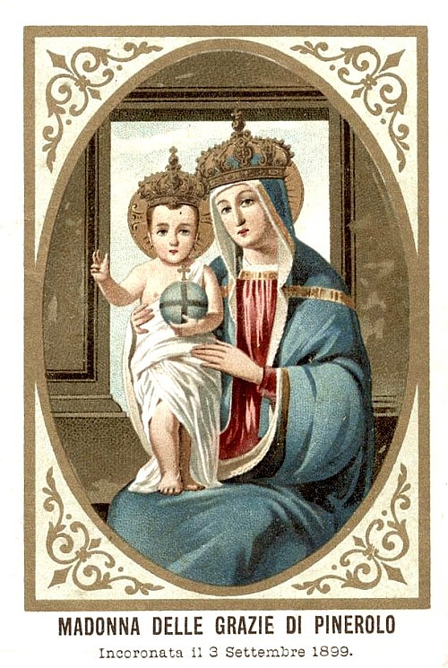 Our Lady of Pignerol, is also known as Our Lady of Pinerolo, Notre-Dame de Piedmont and Madonna delle Grazie di Pinerolo. The Shrine was built in honour of the Assumption of the Blessed Virgin in the year 1098, by Adelaide, Countess of Savoy. It is a National Shrine of Savoy. Pinerolo is a Town in northern Italy near Turin in a region historically known as Savoy, which was annexed to France. The Town itself began just over 1,000 years ago, due to its central location along a trade route that ran between France and Italy. The pious and far-seeing Countess anticipated, by almost one thousand years, the Dogma of the Assumption of Our Lady. Mary was publicly honoured under this beloved title and frequently repaid the generosity of her devout Adelaide, by answering the pleas of her children, crying to her for help in every need. Answering their prayers, curing their ills and obtaining miracles for the faithful, where human aid was despaired of,but where faith always conquered. When the Assumption of Our Lady was proclaimed a Dogma, the rejoicing at the Pignerolo Shrine was indescribable. Venerable Pope Pius XII, on 1 November 1950, solemnly proclaimed: