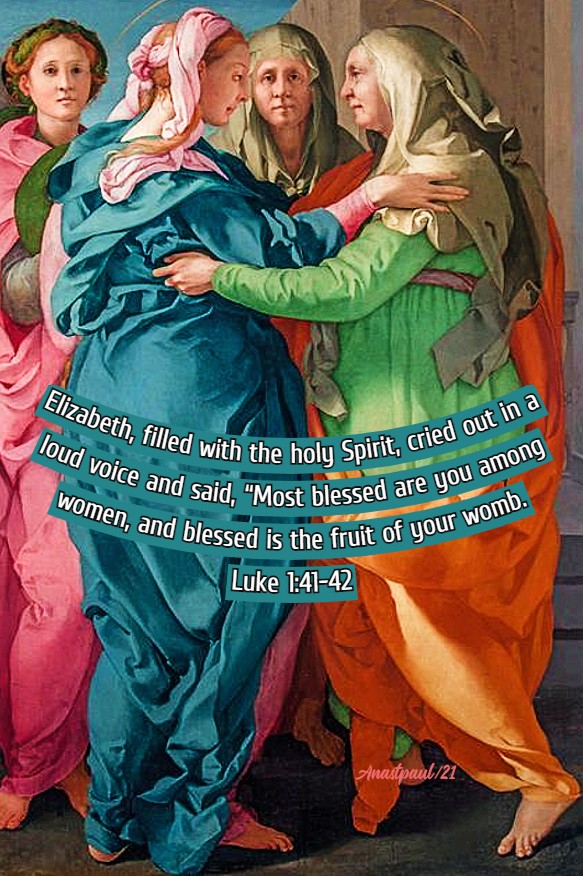 “Elizabeth, filled with the holy Spirit, cried out in a loud voice and said, “Most blessed are you among women, and blessed is the fruit of your womb.” – Luke 1:41-42