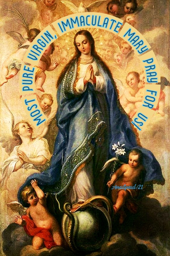 PRAYER – In Your goodness Lord, as we rejoice at the coming of Your Son in flesh and blood like ours, grant that when He comes again in glory, we may receive the gift of eternal life. And may His Blessed and Immaculate ever Virgin Mother, cast upon us a look of mercy and intercede on our behalf. Through Jesus Christ our Lord, with the Holy Spirit, God now and for all eternity, amen.