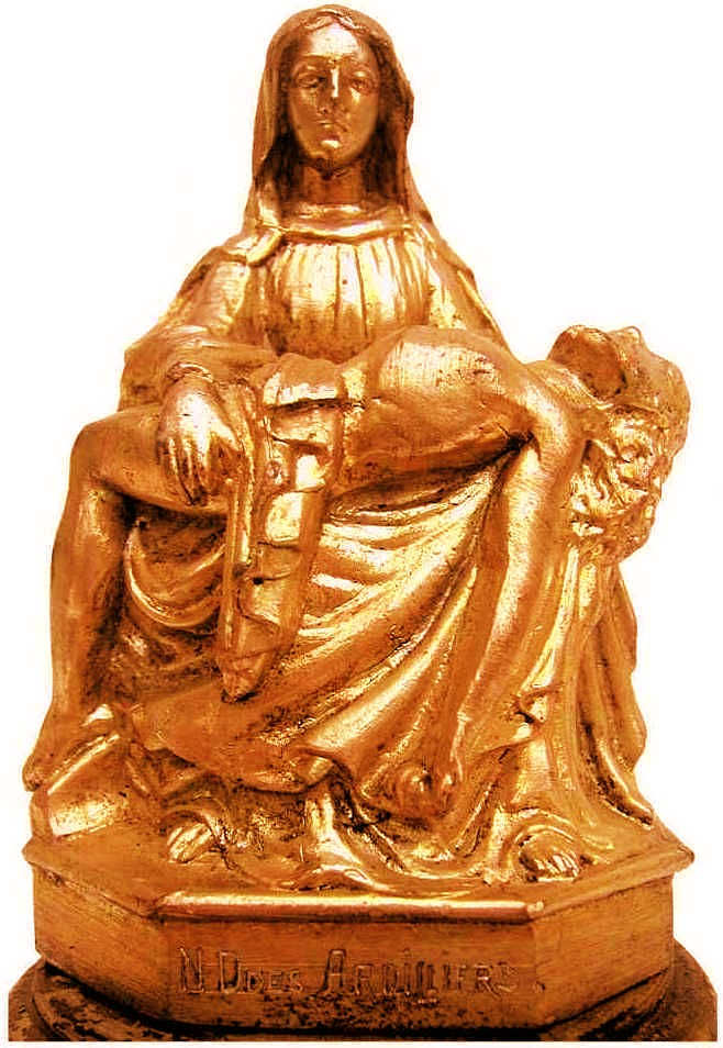 Our Lady of Ardilliers, located at Saumur, in Anjou, France. Its name is illustrious throughout France, as well on account of the concourse of people who were attracted there, as from a fountain which cured several maladies. This image represents Our Lady of Pity, who holds in her arms her dead Son, whose head is supported by an Angel.