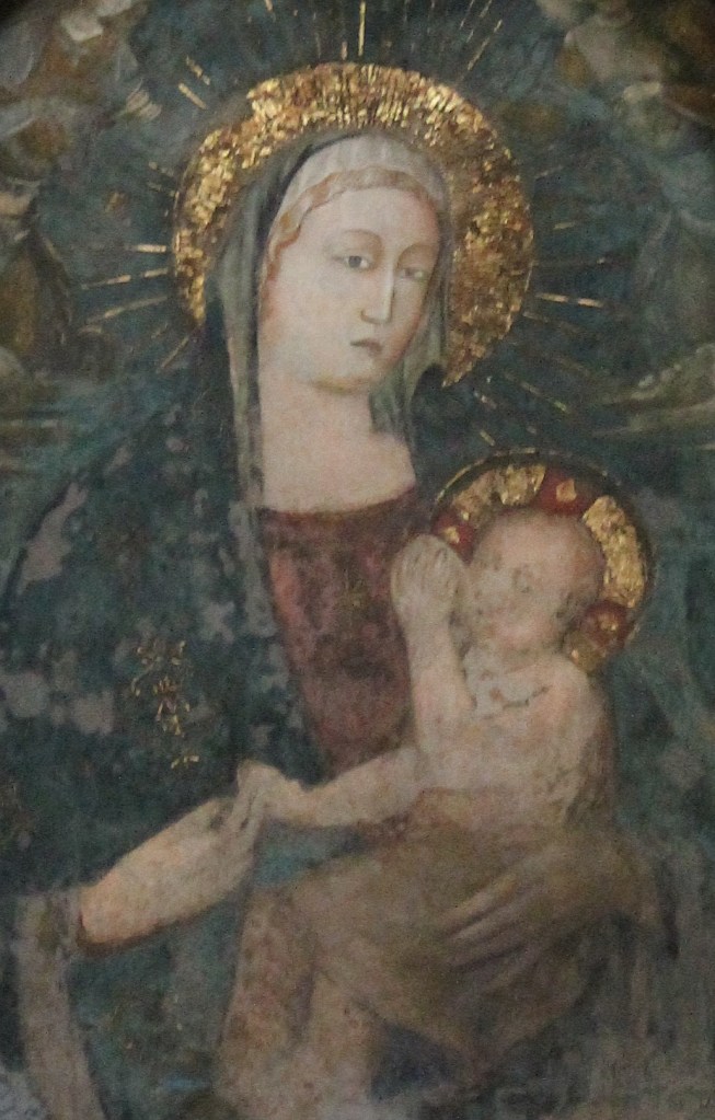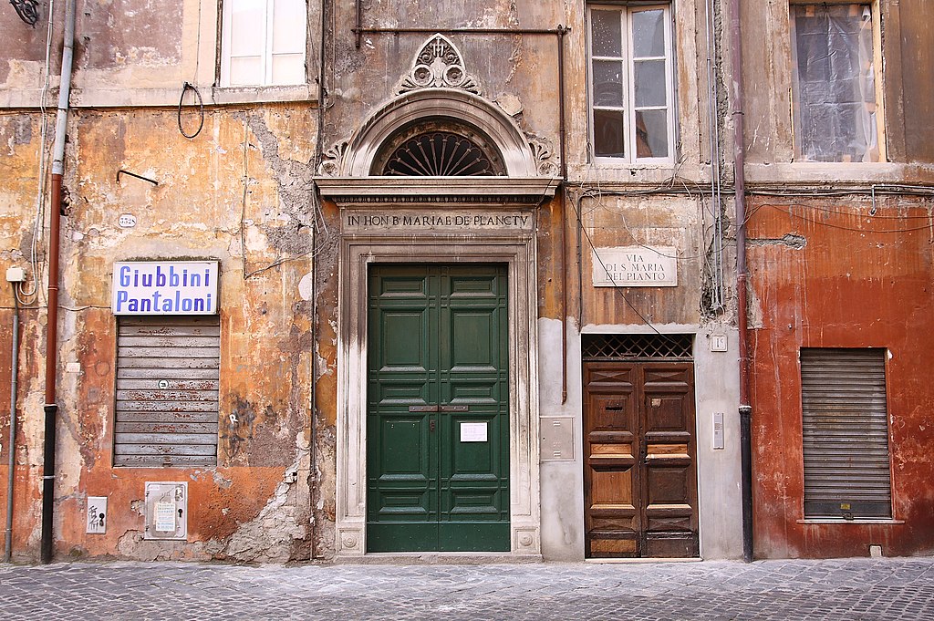 On 10 January1546, two men quarreled violently near the street Shrine of the Madonna del Portico d’Ottavia, on via Arco dei Cenci near the Roman Ghetto. One begged the other to spare him for love of the Virgin Mary, then stabbed that man in the back when he hugged him in forgiveness. The image of the Virgin wept three days. The 15th-century fresco was then moved into the nearby Church of San Salvatore de Cacabariis.
