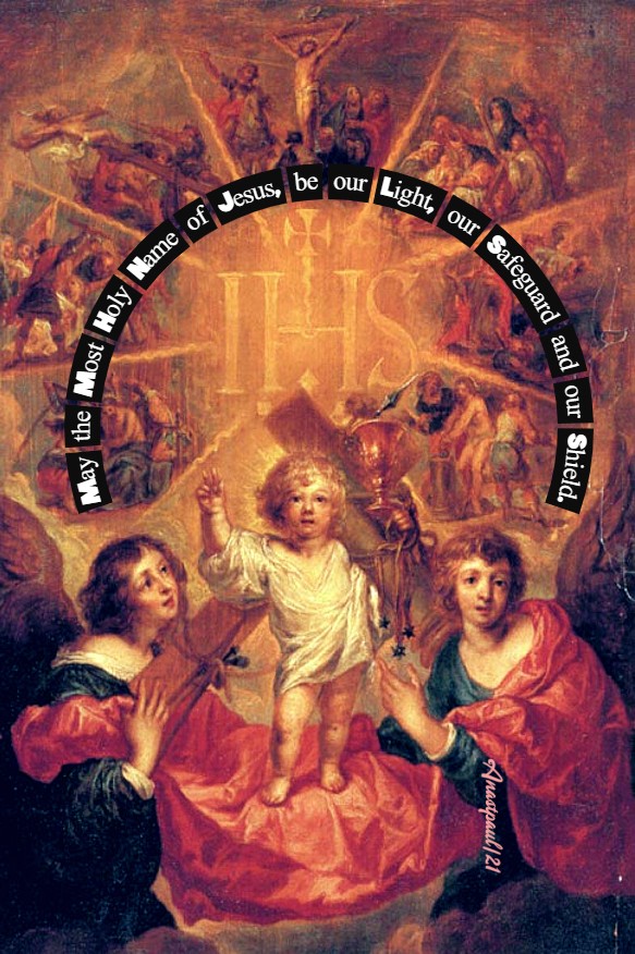 PRAYER – Almighty God, Your Son’s manhood, born of the Virgin, was a new creation, untainted by our sinful condition. Renew us then, in Christ and cleanse us from our sins. May the Most Holy Name of Jesus, be our light, our safeguard and our shield. Through Christ our Lord, in the unity of the Holy Spirit, God for all time and forever, amen.