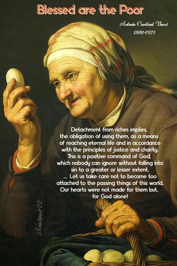 “Detachment from riches implies, the obligation of using them, as a means of reaching eternal life and in accordance with the principles of justice and charity.