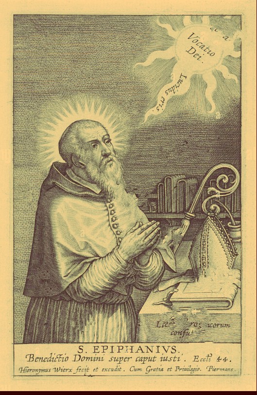 Our primary source for Epiphanius’ life is the Vita Epifanius written by St Magnus Felix Ennodius (c 473-521) , who knew him personally, travelling with the Bishop on his mission to King Gundobad of the Burgundians in 494–6. According to St Ennodius, Epiphanius’ father was Maurus and his mother Focaria, who was related to Mirocle, Bishop of Milan (304-326). Epiphanius was the brother of Saint Honorata and Saint Liberata.