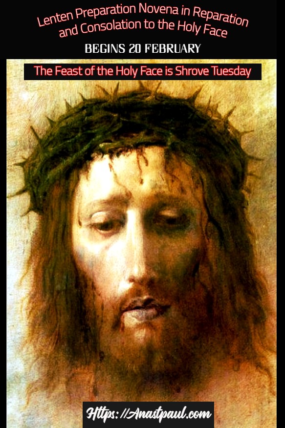For so many, Shrove Tuesday is a date on the calendar that gets overshadowed by Ash Wednesday, that memorable day we wear the outward sign of repentance and recall our mortality. How much more meaningful will our Ash Wednesday be, if we first mark Shrove Tuesday as a Feast of the Holy Face, concluding the Novena we began in the time of preparation and beginning Lent more in love with the Countenance of Christ and, through Him, made more beautiful in our own soul. AMEN, Let us Pray ……