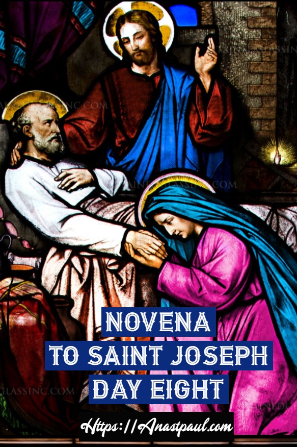 O glorious Saint Joseph, faithful follower of Jesus Christ, to you we raise our hearts and hands, to implore your powerful intercession, to obtain from the gentle heart of Jesus all the help and graces necessary for our spiritual and temporal welfare, particularly the grace of a holy death and the special grace I now implore: …………….. (Mention your request) O guardian of the Word Incarnate we feel animated with confidence, that your prayers on our behalf, will be graciously heard, before the throne of God. St Joseph, Patron of the Dying, Pray for us! Amen