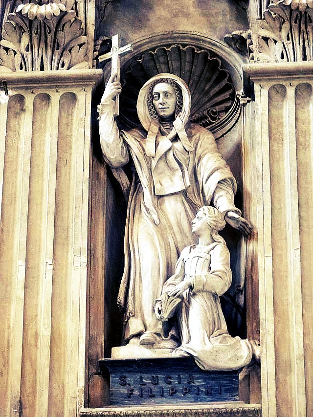 Lucy died at sixty years of age on 25 March 1732, on Feast of the Annunciation. For three centuries, the example of Christian womanhood that marked the lives of her Teachers and students was recognised by Holy Mother Church. On 22 June 1930, Lucia Filippini was declared a Saint of the Church by Pope Pius XI and her Statue was given the last available niche in the Basilica of Saint Peter in Rome. Her statue can be seen in the first upper niche from the main entrance on the left (south) side of the nave of St Peter’s. The Institute, which bears the name of Lucia Filippini, owes its birth to the Cardinal who loved schools and to the Holy Teacher, who committed her entire life to the educative-apostolic mission.