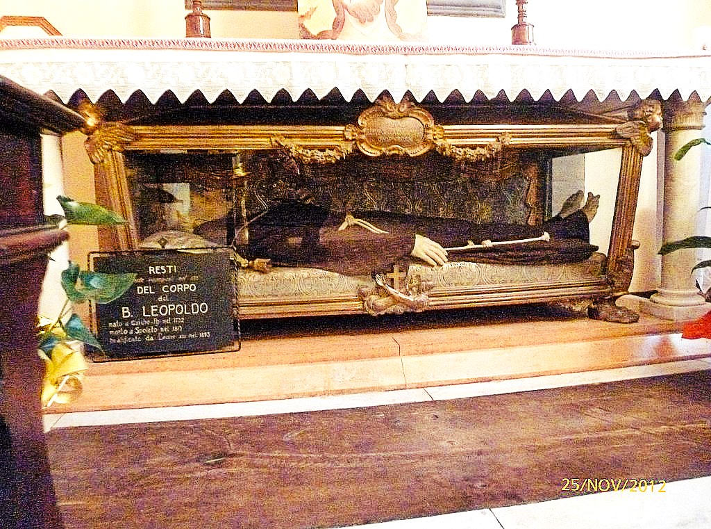 During a sermon for Christmas in 1814 Leopold was taken ill and died a few months later, on 2 April 1815 of that illness and was buried in the Church of Saint Francis in Spoleto. His tomb immediately became the site of miracles.