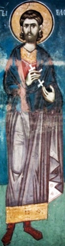 In the seventh- or eighth-century Vitas of St John Chrysostom ascribed to George of Alexandria Basiliscus, makes the same appearance but identifies himself as a military Martyr. In this latter construction, he has a legendary Greek-language Passio, making him a Martyr at Comana under Maximian. In this version, Basiliscus was brought to a pagan temple to perform ritual sacrifice, which resulted, both in the temple’s being set afire by lightning and in the destruction of its idols, after which he was executed on this day, by decapitation and his body was thrown into the river Iris. Christians secretly retrieved the Saint’s remains and buried them in a freshly plowed field, where later a Martyrion or Shrine, was built in his honour. Thus far Basiliscus’ own Passio.
