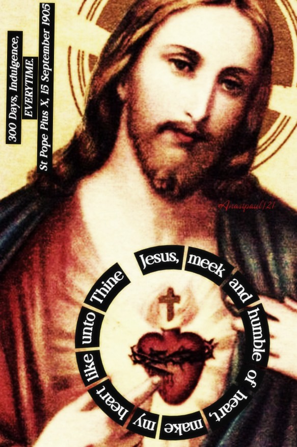 PRAYER – Grant O Lord, we pray, that through the intercession of Thy Holy Martyrs Vitus, Modestus and Crescentia, Thy Church be not high-minded but grow in that humility which is pleasing to Thee, so that despising evil, she may practice whatever is good with unbounded charity. Through Jesus Christ, Thy Son our Lord, Who lives and reigns with Thee, in the unity of the Holy Ghost, God, world without end. Amen (Collect). “Jesus, meek and humble of heart, make my heart like unto Thine.” – 300 Days, EVERYTIME. (Unless otherwise stated, e.g., “once a day,” a partial Indulgence may be gained any number of times in succession.) St Pope Pius X, 15 September 1905.