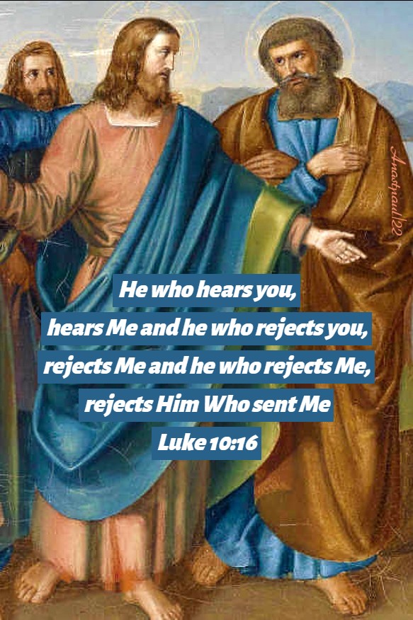 “He who hears you, hears Me and he who rejects you, rejects Me and he who rejects Me, rejects Him Who sent Me.”…Luke 10:16