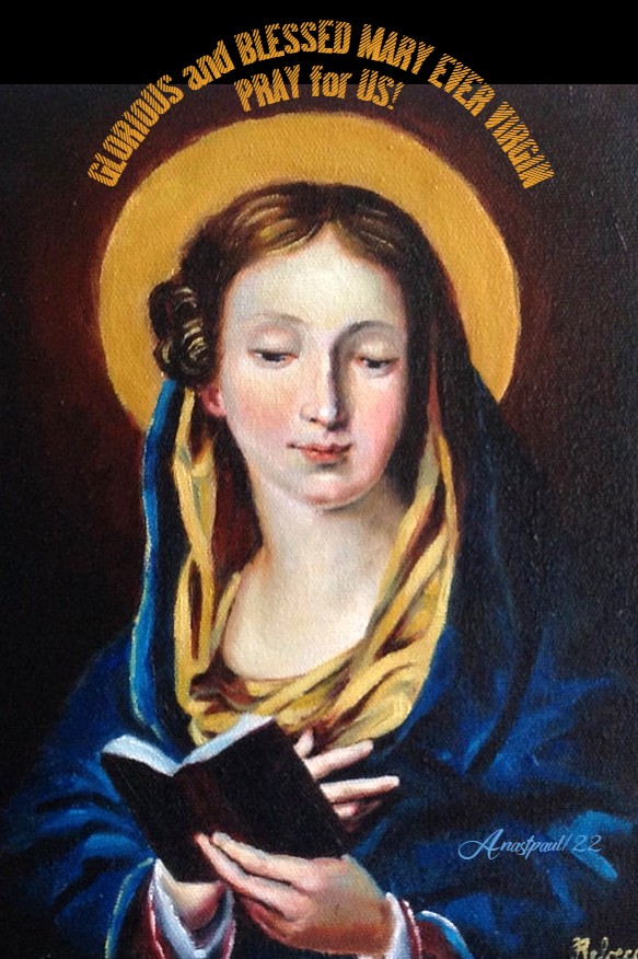 PRAYER – Grant us, Thy servants, O Lord God, we beseech Thee, to enjoy lasting health of mind and body; and by the intercession of glorious and blessed Mary, ever virgin, may we be delivered from present sorrow and partake of the fullness of eternal happiness.Through Jesus Christ, Thy Son our Lord, Who lives and reigns with Thee, in the unity of the Holy Ghost, God, world without end. Amen (Collect).