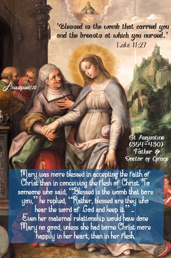 REFLECTION – “Mary was more blessed in accepting the faith of Christ than in conceiving the flesh of Christ. To someone who said, “Blessed is the womb that bore you,” he replied, “Rather, blessed are they who hear the word of God and keep it.”