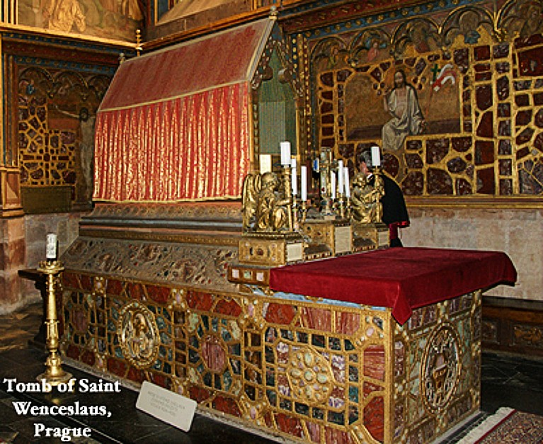 The Church door below, to which Saint Wenceslaus clung at his Martyrdom, leads to his Chapel in the Cathedral of Saint Vitus in Prague.