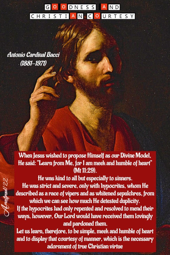 Let us learn, therefore, to be simple, meek and humble of heart and to display that courtesy of manner, which is the necessary adornment of true Catholic virtue”