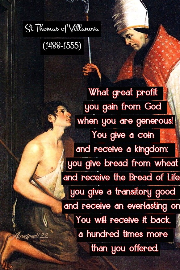 One thought on “Quote/s of the Day – 22 September – The Memorial of St Thomas of Villanova”