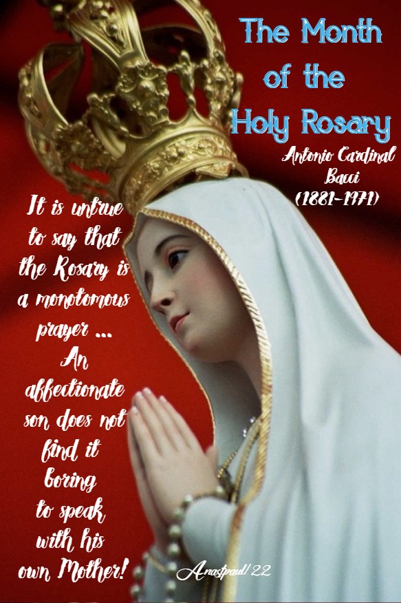 One Minute Reflection – 1 October – “The Month of the Most Holy Rosary” and Mary’s Day – Ecclesiasticus 24:14-16, Luke 11:27-28 Scripture search here: https://www.drbo.org/