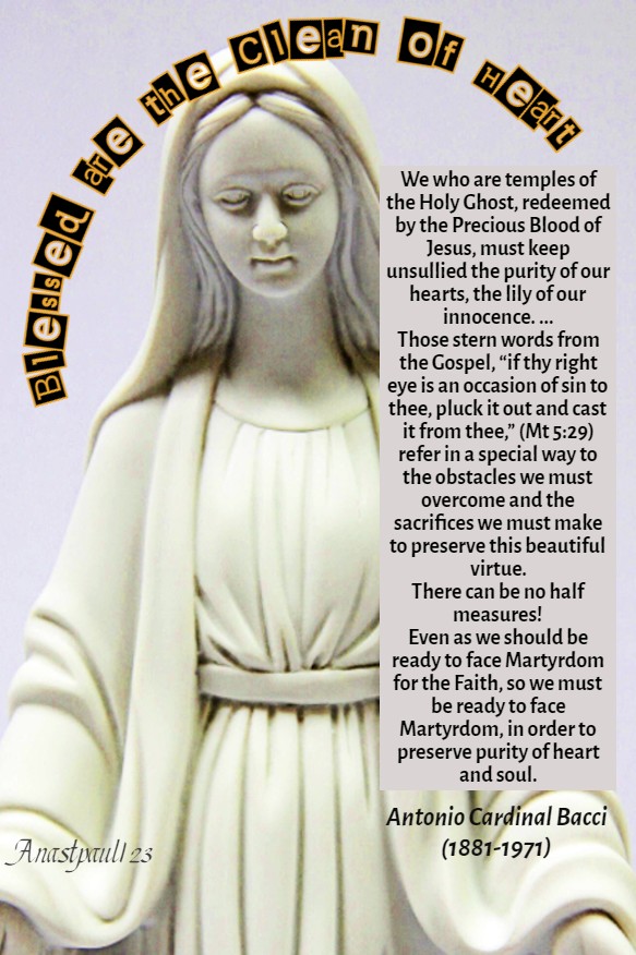 We who are temples of the Holy Ghost, redeemed by the Precious Blood of Jesus, must keep unsullied the purity of our hearts, the lily of our innocence.