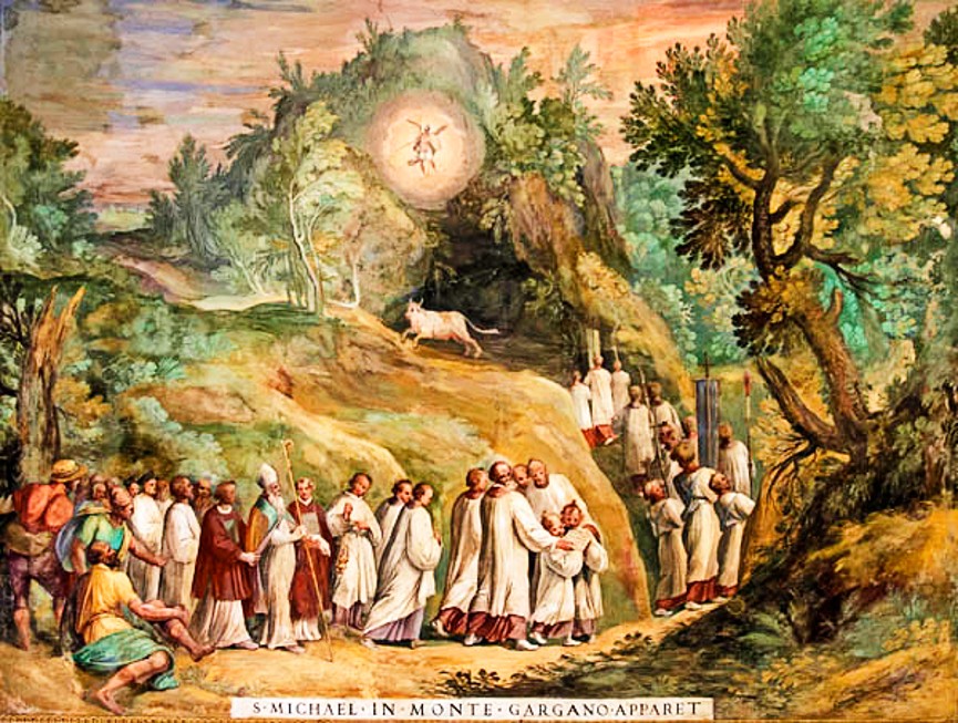 Shocked, he went to the Bishop of Siponto, Lorenzo and told what had happened. Bishop Lorenzo prescribed three days of prayer and fasting. On the third day, the Archangel Michael revealed himself to the Bishop, with the invitation to dedicate that cave to Christian worship. But Lorenzo hesitated and did not execute the will of St Michael because the pagan cult was still very much alive on the mountain where the cave was located.