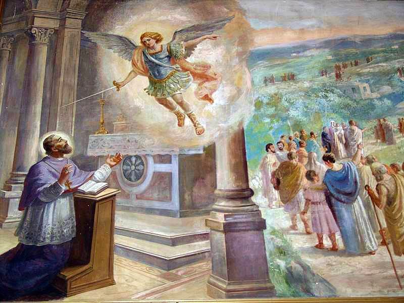At this juncture the Archangel reappeared to the Bishop, to tell him that he would give his help if the Sipontines attacked the enemy. The promise came true and when the besiegers resumed hostilities, a storm of sand and hail suddenly fell on the barbarians, who, frightened, fled.