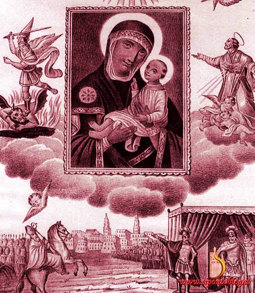 The Emperor Zeno, still alive before 491, designated Lorenzo his relative, who accepted and left, bringing with him precious Relics of Sts Stephen and Agatha. It is also believed that Lorenzo brought with him, the Icon of Our Lady of Siponto (Maria Santissima di Siponto). It is said that the Icon was painted by an anonymous painter in Constantinople in the fifth century and was exhibited in one of the most important Churches there.