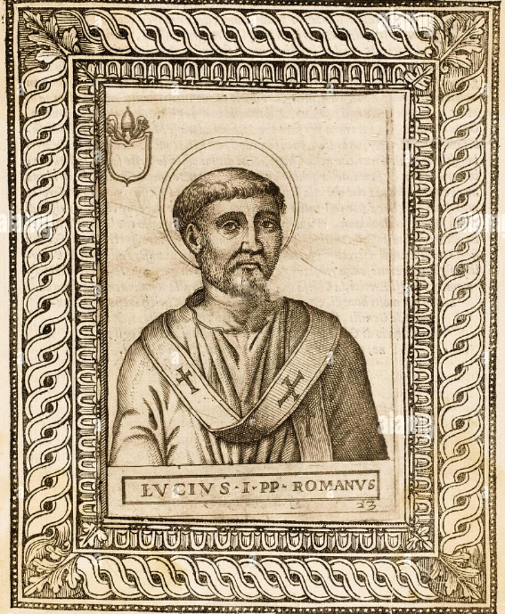 The Roman Martyrology reads today: “At Rome, on the Appian Way. during the persecution of Valerian, the birthday of St Lucius, Pope and Martyr, who was first exiled for the Faith of Christ but, being permitted by Divine Providence to return to his Church, he suffered Martyrdom by decapitation, after having combated the Novatians. His praises have been published by the blesseed Saint Cyprian, Bishop of Carthage(200-258).”