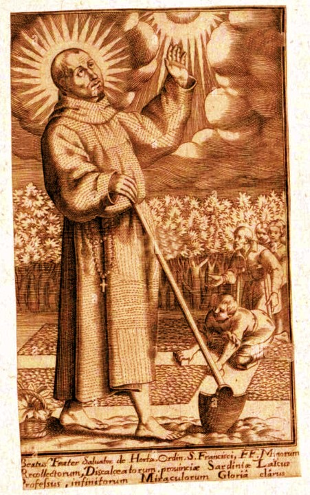 Salvator was born of poor parents in the year 1520. Orphaned when still quite young, he tended cattle and was later sent as an apprentice to a shoemaker in Barcelona. His devout heart, however, was constantly prompting him to consecrate himself to God; so, when he was twenty years old, he entered the Franciscan Order as a lay brother. He distinguished himself among his brethren by rigorous mortification, profound humility and extraordinary simplicity.