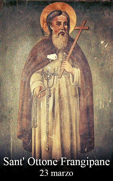 Saint of the Day – 23 March – St Ottone Frangipane (1040-1127) Layman, military Knight, Pilgrim, Ascetic, Hermit, Miracle-worker both during life and after his death. Founder of a Pilgrim’s Hospice in Ariano which later became a huge Hospital. Born in 1040 in Rome, Italy and died on 23 March 1127 in Ariano Irpino, Italy of natural causes. Patronages – the City of Ariano Irpino, Italy, the Diocese of Ariano Irpino-Lacedonia, Castelbottaccio, Italy. Also known as – Oddone, Oto, Otto.