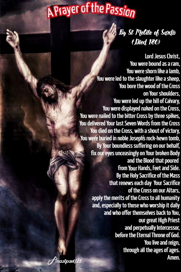 A Prayer of the Passion By St Melito of Sardis (Died 180) Bishop of Sardis, Apologist, Father