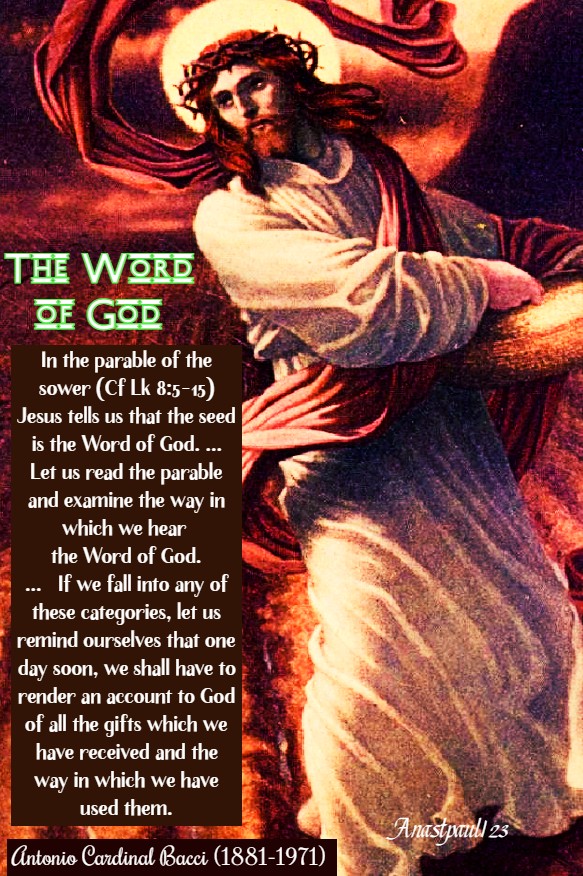 “In the parable of the sower (Cf Lk 8:5-15) Jesus tells us that the seed is the Word of God.