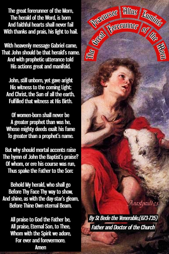 In due course he is born, he receives his name, his father’s tongue is loosened. One must read these events in the light of their deeper symbolic meaning.” – St Augustine (354-430) Father and Doctor of Grace (6th Sermon for the Nativity of John the Baptist, No 293:1)