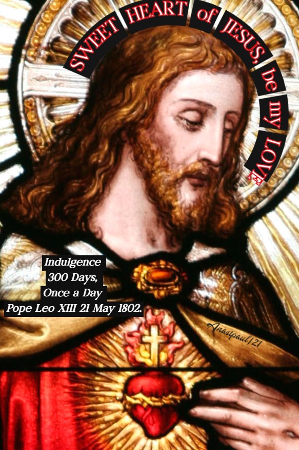 SWEET HEART of JESUS, be my LOVE. – Indulgence 300 Days, Once a Day – Pope Leo XIII 21 May 1802.