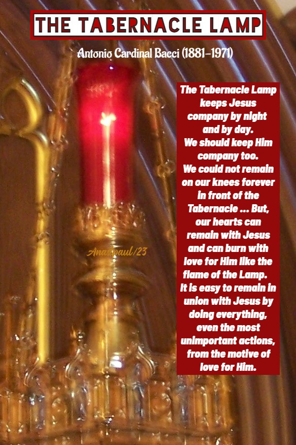 “The Tabernacle Lamp keeps Jesus company by night and by day.