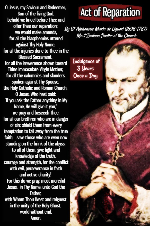 Act of Reparation By St Alphonsus Maria de Liguori (1696-1787) Most Zealous Doctor of the Church Indulgence of 3 Years Once a Day