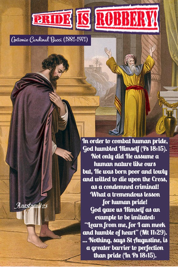 If we do not learn from this great lesson in humility, we shall never make any progress in the way of Christian perfection. Nothing, says St Augustine, is a greater barrier to perfection than pride (In Ps 18:15).