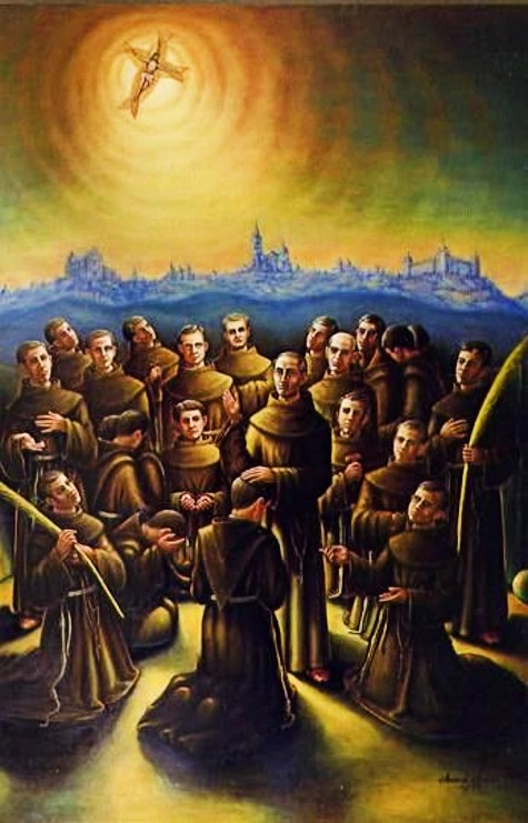 In 1220, one of the first disciples of Francis, the learned and miracle-worker St Anthony of Padua, attempted to go to North Africa among the Saracens, but a storm forced him to be shipwrecked in Sicily. But, already at that time, the beginning of 1220, there were the first Franciscan Martyrs at the hands of the Saracens – St Francis had sent five Friars as Missionaries to Muslim-occupied Spain, Saints Berard, Peter,Otho, Accursius, and Adjutus, considered the Protomartyrs of the Franciscans. They began to preach in the Mosques and were, therefore sentenced to death by the Sultan but then they were pardoned and, like so many other Christians in the region, sent to Morocco to work as forced labourers.
